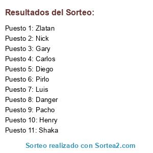 Lista de participantes: Pirlo, Shaka, Danger, Zlatan, Carlos, Henry, Diego, Luis, Gary, Nick, Pacho.