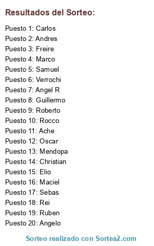 Resultados del sorteo: