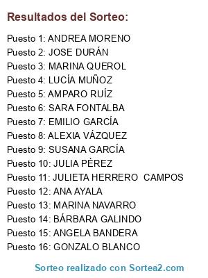 Resultados del sorteo:
