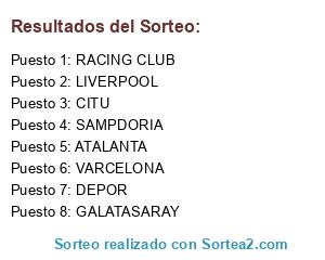 Lista de participantes: LIVERPOOL, GALATASARAY, RACING CLUB, CITU, VARCELONA, ATALANTA, DEPOR, SAMPDORIA.