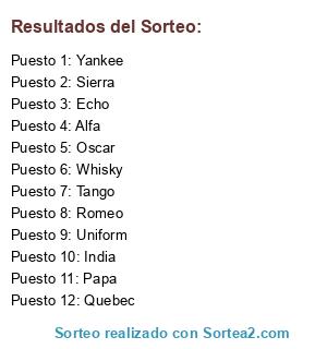Resultados del sorteo: