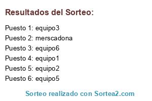 Lista de participantes: equipo1, equipo2, equipo3, merscadona, equipo5, equipo6.