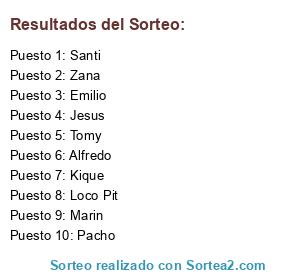 Lista de participantes: Kique, Tomy, Loco Pit, Emilio, Alfredo, Santi, Jesus, Pacho, Marin, Zana.