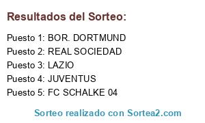 Lista de participantes: BOR. DORTMUND, FC SCHALKE 04, JUVENTUS, LAZIO, REAL SOCIEDAD.