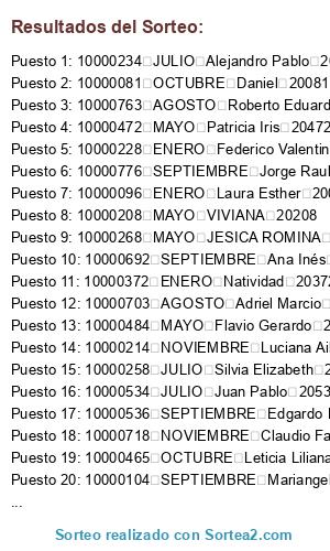 - Premio 1 : 10000234 JULIO Alejandro Pablo 20234