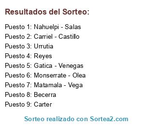 Lista de participantes: Gatica - Venegas, Becerra, Nahuelpi - Salas, Carriel - Castillo, Matamala - Vega, Urrutia, Reyes, Monserrate - Olea, Carter.