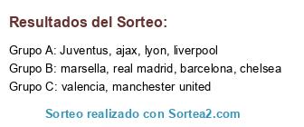 Lista de participantes: real madrid, barcelona, marsella, ajax, lyon, valencia, liverpool, manchester united, chelsea, Juventus.