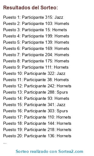 Lista de participantes: Participante 1: Hornets, Participante 2: Hornets, Participante 3: Hornets, Participante 4: Hornets, Participante 5: Hornets, Participante 6: Hornets, Participante 7: Hornets, Participante 8: Hornets, Participante 9: Hornets, Participante 10: Hornets, Participante 11: Hornets, Participante 12: Hornets, Participante 13: Hornets, Participante 14: Hornets, Participante 15: Hornets, Participante 16: Hornets, Participante 17: Hornets, Participante 18: Hornets, Participante 19: Hornets, Participante 20: Hornets, Participante 21: Hornets, Participante 22: Hornets, Participante 23: Hornets, Participante 24: Hornets, Participante 25: Hornets, Participante 26: Hornets, Participante 27: Hornets, Participante 28: Hornets, Participante 29: Hornets, Participante 30: Hornets, Participante 31: Hornets, Participante 32: Hornets, Participante 33: Hornets, Participante 34: Hornets, Participante 35: Hornets, Participante 36: Hornets, Participante 37: Hornets, Participante 38: Hornets, Participante 39: Hornets, Participante 40: Hornets, Participante 41: Hornets, Participante 42: Hornets, Participante 43: Hornets, Participante 44: Hornets, Participante 45: Hornets, Participante 46: Hornets, Participante 47: Hornets, Participante 48: Hornets, Participante 49: Hornets, Participante 50: Hornets, Participante 51: Hornets, Participante 52: Hornets, Participante 53: Hornets, Participante 54: Hornets, Participante 55: Hornets, Participante 56: Hornets, Participante 57: Hornets, Participante 58: Hornets, Participante 59: Hornets, Participante 60: Hornets, Participante 61: Hornets, Participante 62: Hornets, Participante 63: Hornets, Participante 64: Hornets, Participante 65: Hornets, Participante 66: Hornets, Participante 67: Hornets, Participante 68: Hornets, Participante 69: Hornets, Participante 70: Hornets, Participante 71: Hornets, Participante 72: Hornets, Participante 73: Hornets, Participante 74: Hornets, Participante 75: Hornets, Participante 76: Hornets, Participante 77: Hornets, Participante 78: Hornets, Participante 79: Hornets, Participante 80: Hornets, Participante 81: Hornets, Participante 82: Hornets, Participante 83: Hornets, Participante 84: Hornets, Participante 85: Hornets, Participante 86: Hornets, Participante 87: Hornets, Participante 88: Hornets, Participante 89: Hornets, Participante 90: Hornets, Participante 91: Hornets, Participante 92: Hornets, Participante 93: Hornets, Participante 94: Hornets, Participante 95: Hornets, Participante 96: Hornets, Participante 97: Hornets, Participante 98: Hornets, Participante 99: Hornets, Participante 100: Hornets, Participante 101: Hornets, Participante 102: Hornets, Participante 103: Hornets, Participante 104: Hornets, Participante 105: Hornets, Participante 106: Hornets, Participante 107: Hornets, Participante 108: Hornets, Participante 109: Hornets, Participante 110: Hornets, Participante 111: Hornets, Participante 112: Hornets, Participante 113: Hornets, Participante 114: Hornets, Participante 115: Hornets, Participante 116: Hornets, Participante 117: Hornets, Participante 118: Hornets, Participante 119: Hornets, Participante 120: Hornets, Participante 121: Hornets, Participante 122: Hornets, Participante 123: Hornets, Participante 124: Hornets, Participante 125: Hornets, Participante 126: Hornets, Participante 127: Hornets, Participante 128: Hornets, Participante 129: Hornets, Participante 130: Hornets, Participante 131: Hornets, Participante 132: Hornets, Participante 133: Hornets, Participante 134: Hornets, Participante 135: Hornets, Participante 136: Hornets, Participante 137: Hornets, Participante 138: Hornets, Participante 139: Hornets, Participante 140: Hornets, Participante 141: Hornets, Participante 142: Hornets, Participante 143: Hornets, Participante 144: Hornets, Participante 145: Hornets, Participante 146: Hornets, Participante 147: Hornets, Participante 148: Hornets, Participante 149: Hornets, Participante 150: Hornets, Participante 151: Hornets, Participante 152: Hornets, Participante 153: Hornets, Participante 154: Hornets, Participante 155: Hornets, Participante 156: Hornets, Participante 157: Hornets, Participante 158: Hornets, Participante 159: Hornets, Participante 160: Hornets, Participante 161: Hornets, Participante 162: Hornets, Participante 163: Hornets, Participante 164: Hornets, Participante 165: Hornets, Participante 166: Hornets, Participante 167: Hornets, Participante 168: Hornets, Participante 169: Hornets, Participante 170: Hornets, Participante 171: Hornets, Participante 172: Hornets, Participante 173: Hornets, Participante 174: Hornets, Participante 175: Hornets, Participante 176: Hornets, Participante 177: Hornets, Participante 178: Hornets, Participante 179: Hornets, Participante 180: Hornets, Participante 181: Hornets, Participante 182: Hornets, Participante 183: Hornets, Participante 184: Hornets, Participante 185: Hornets, Participante 186: Hornets, Participante 187: Hornets, Participante 188: Hornets, Participante 189: Hornets, Participante 190: Hornets, Participante 191: Hornets, Participante 192: Hornets, Participante 193: Hornets, Participante 194: Hornets, Participante 195: Hornets, Participante 196: Hornets, Participante 197: Hornets, Participante 198: Hornets, Participante 199: Hornets, Participante 200: Hornets, Participante 201: Hornets, Participante 202: Hornets, Participante 203: Hornets, Participante 204: Hornets, Participante 205: Hornets, Participante 206: Hornets, Participante 207: Hornets, Participante 208: Hornets, Participante 209: Hornets, Participante 210: Hornets, Participante 211: Hornets, Participante 212: Hornets, Participante 213: Hornets, Participante 214: Hornets, Participante 215: Hornets, Participante 216: Hornets, Participante 217: Hornets, Participante 218: Hornets, Participante 219: Hornets, Participante 220: Hornets, Participante 221: Hornets, Participante 222: Hornets, Participante 223: Hornets, Participante 224: Hornets, Participante 225: Hornets, Participa