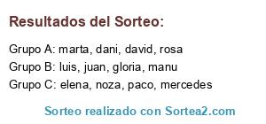 Lista de participantes: paco, juan, luis, noza, rosa, dani, manu, marta, gloria, mercedes, david, elena.