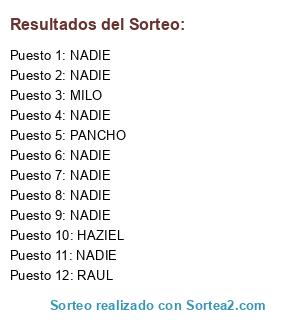 Lista de participantes: HAZIEL, RAUL, MILO, PANCHO, NADIE, NADIE, NADIE, NADIE, NADIE, NADIE, NADIE, NADIE.