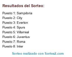 Lista de participantes: Everton, Villarreal, Juventus, City, Sampdoria, Spurs, Inter, Roma.