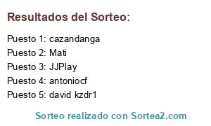 Lista de participantes: JJPlay, Mati, joakinkiñones97, david kzdr1, cazandanga, antoniocf.