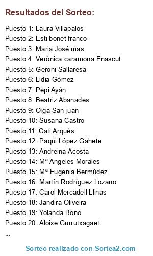 Lista de participantes: Yolanda Bono, Paqui López Gahete, Laura Villapalos, Jandira Oliveira, Lidia Gómez (2 participaciones), Francisco Arqués García, Carol Mercadell Llinas, Magdalena Calafell, Andreina Acosta, Esther Leocadia Cabezas, Martín Rodríguez Lozano, Maria José mas, Cati Arqués, Virginia Barboza, Mª Eugenia Bermúdez, Susana Castro, Mª Angeles Morales, Pepi Ayán, Beatriz Abanades, Esti bonet franco, Olga San juan, Anna gasó chalé, Geroni Sallaresa, Aloixe Gurrutxagaet, Maria Fuentes García, Verónica caramona Enascut.