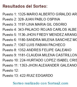 Resultados del sorteo: