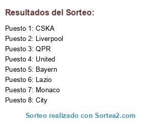 Lista de participantes: City, CSKA, Monaco, Liverpool, Bayern, United, QPR, Lazio.