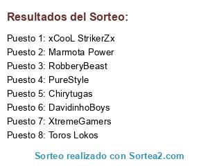 Lista de participantes: xCooL StrikerZx, Marmota Power, PureStyle, Toros Lokos, RobberyBeast, DavidinhoBoys, Chirytugas, XtremeGamers.