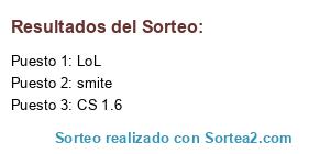 Lista de participantes: CS 1.6, LoL, BT3 (¿), minecraft, smite.