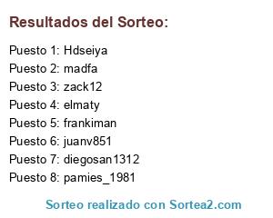 Lista de participantes: juanv851, madfa, diegosan1312, frankiman, zack12, elmaty, pamies_1981, Hdseiya.