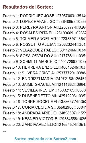 Resultados del sorteo:
