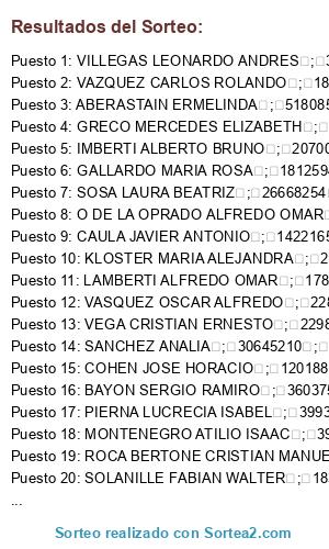Resultados del sorteo: