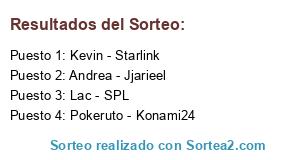 Lista de participantes: Kevin - Starlink, Lac - SPL, Pokeruto - Konami24, Andrea - Jjarieel.
