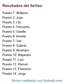 Resultados del sorteo: