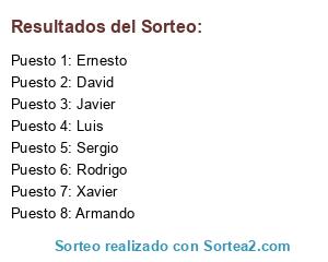 Lista de participantes: Armando, David, Ernesto, Luis, Javier, Rodrigo, Sergio, Xavier.