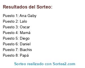 Lista de participantes: Papá, Mamá, Daniel, Lalo, Biachis, Oscar, Ana Gaby, Diego.