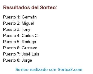 Lista de participantes: Germán, Miguel, Rodrigo, José Luis, Gustavo, Carlos C., Jorge, Tony.