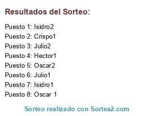 Lista de participantes: Oscar 1, Oscar2, Julio1, Julio2, Isidro1, Isidro2, Crispo1, Hector1.