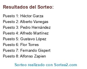 Lista de participantes: Héctor Garza, Alberto Vanegas, Alfonso Zapien, Gustavo López, Flor Torres, Pedro Hernández, Fernando Gispert, Alfredo Martínez.