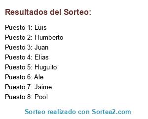 Lista de participantes: Luis, Elias, Ale, Juan, Huguito, Pool, Jaime, Humberto.