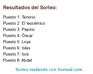 Lista de participantes: Tenorio, Pepino, Óscar, Abdel, Isra, Islas, Loya, El leucémico.
