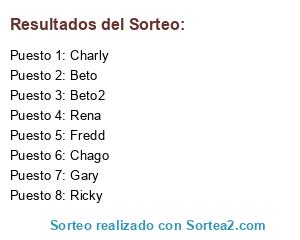 Lista de participantes: Charly, Fredd, Gary, Chago, Ricky, Beto, Rena, Beto2.