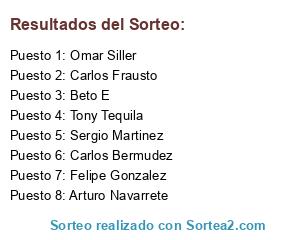 Lista de participantes: Arturo Navarrete, Carlos Bermudez, Felipe Gonzalez, Omar Siller, Sergio Martinez, Tony Tequila, Beto E, Carlos Frausto.