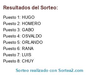 Resultados del sorteo:
