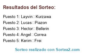 Resultados del sorteo: