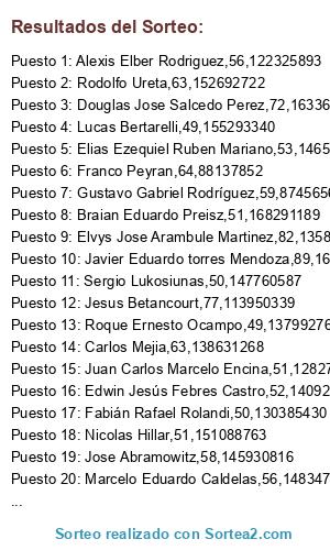 Lista de participantes: Sorteo realizado sobre un fichero que contiene 249 participantes.
