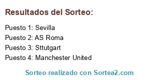Lista de participantes: Sttutgart, Manchester United, Sevilla, AS Roma.