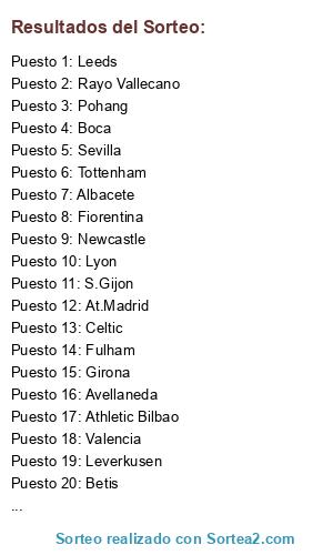 Resultados del sorteo: