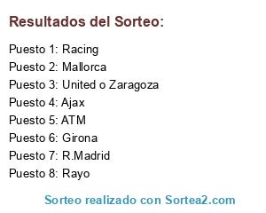 Lista de participantes: Mirandes, Barsa, Valencia, Fulham, Betis, United, Pohang, Atm.