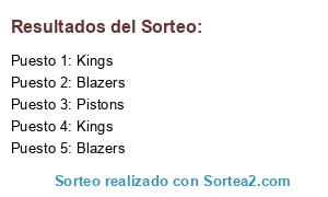 Lista de participantes: Kings(27), Knicks(36), Pistons(17), Blazers(29), Wizards(26).