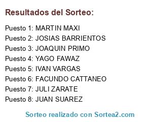 Lista de participantes: JOSIAS BARRIENTOS, YAGO FAWAZ, FACUNDO CATTANEO, MARTIN MAXI, JOAQUIN PRIMO, JUAN SUAREZ, IVAN VARGAS, JULI ZARATE.