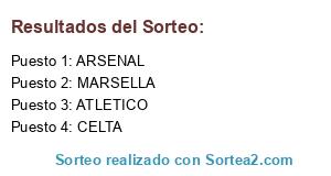 Lista de participantes: ATLETICO, CELTA, ARSENAL, MARSELLA.