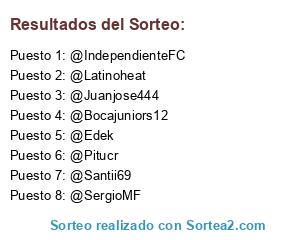 Lista de participantes: @IndependienteFC, @Juanjose444, @Pitucr, @Santii69, @SergioMF, @Edek, @Bocajuniors12, @Latinoheat.