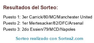 Lista de participantes: 1er Mertesacker/82/DFC/Arsenal, 2do Essien/79/MCD/Napoles, 3er Carrick/80/MC/Manchester United.