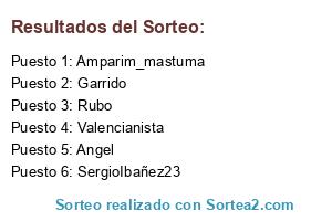 Lista de participantes: Garrido, Angel, Valencianista, SergioIbañez23, Rubo, Amparim_mastuma.