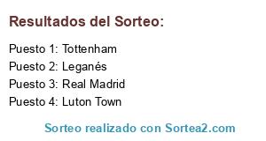 Lista de participantes: Luton Town, Tottenham, Leganés, Real Madrid.