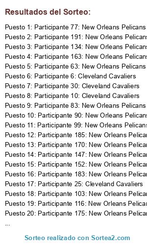- Puesto 1: Participante 77: New Orleans Pelicans