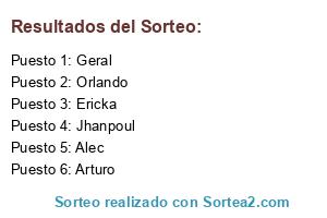 Lista de participantes: Alec, Arturo, Orlando, Geral, Ericka, Jhanpoul.